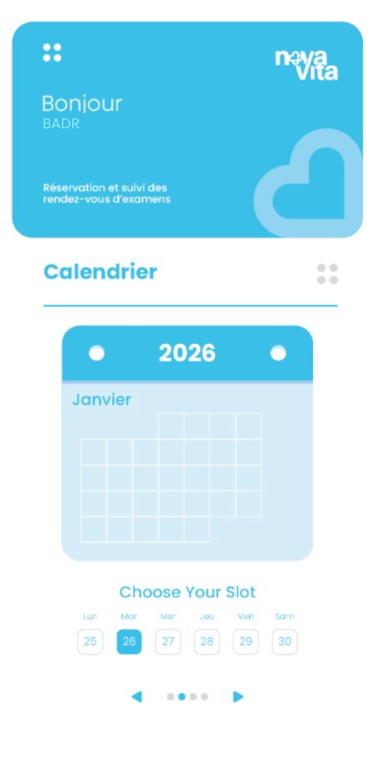 Nova Vita Groupe avait besoin d’une présence digitale unifiée pour ses deux cliniques au Maroc. J’ai développé un écosystème complet — site web professionnel multilingue et application mobile Flutter — permettant aux patients de consulter leurs résultats d’examens, prendre rendez-vous, accéder à leurs rapports médicaux par spécialité et localiser les cliniques, le tout depuis une interface claire et intuitive.
